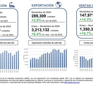 La Asociación Mexicana de la industria Automotriz (AMIA) reportó que en noviembre de 2024 se fabricaron 351,535 vehículos ligeros, siendo...