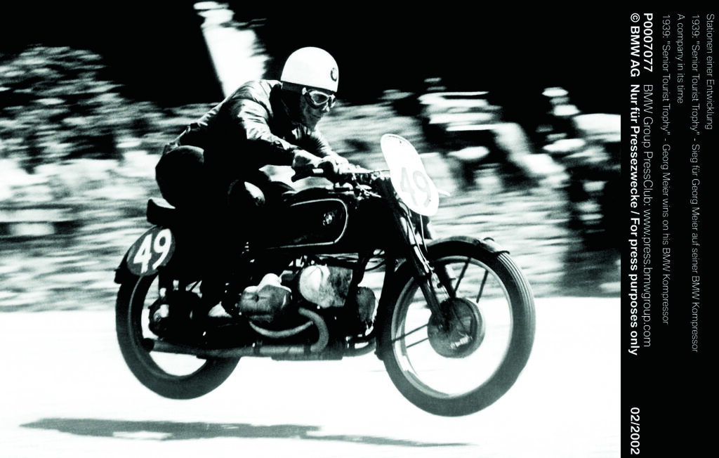 El legado comenzó incluso antes del lanzamiento de su primera motocicleta, la BMW R 32. Entre 1924 y 1929, la armadora ganó de forma consecutiva el Campeonato Alemán de Road Racing en 500 cc con la BMW R 37. En 1939, Georg “Schorsch” Meier se convirtió en el primer piloto no británico en ganar la Senior TT del Isle of Man a bordo de una BMW sobrealimentada, capaz de alcanzar 220 km/h.
