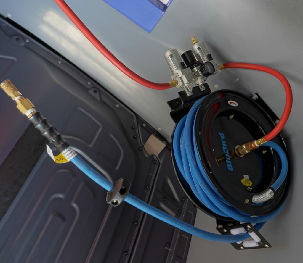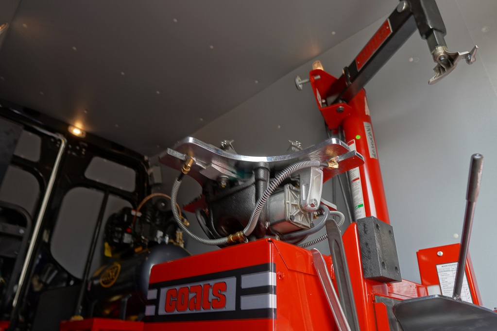 Está equipado para realizar diferentes servicios como: instalación y balanceo de neumáticos, además de cambios de aceite, inflado con nitrógeno e inspección del vehículo.