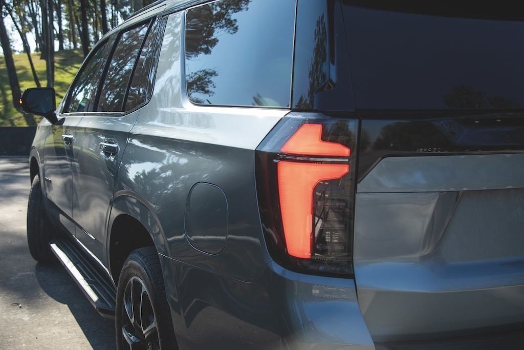 Se nota que se trata de un vehículo grande, ya que rebasa los cinco metros de largo, sólo 40 centímetros por debajo de la Suburban. Al tratarse de un vehículo amplio, cuenta con rines de 20 a 22 pulgadas, según su versión. En la parte trasera destaca su nombre junto con sus faros traseros que la hacen visible en el día y la noche.
