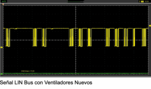 Al revisar si existía la comunicación LIN Bus en el PIN cuatro del conector, se observó que en los ventiladores nuevos sí existía esa señal estando ambos conectados, pero a pesar de ello los motores no interpretaban la señal y se quedaban activados desde que se accionaba el interruptor a ON.