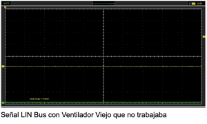 Para comprobar el diagnóstico, realizamos la misma prueba con el ventilador viejo que sí funcionaba. Una vez conectado y con el interruptor en ON, el ventilador permaneció apagado, pero manteniendo la señal de comunicación. Al conectar el ventilador viejo notamos que la comunicación LIN Bus se perdía, comprobando que efectivamente ese ventilador no servía.