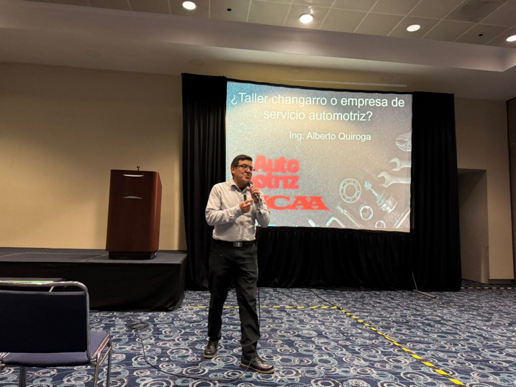 El Ing. Alberto Quiroga, colaborador de Alianza Automotriz, ofreció la conferencia “¿Taller, changarro o empresa de servicio automotriz?”, donde explicó que los talleres de reparación automotriz deben administrarse y verse como empresas. El especialista celebró la participación de los asistentes, ya que el sector reparador aún presenta cierta renuencia a comprender la importancia de una correcta administración del negocio.