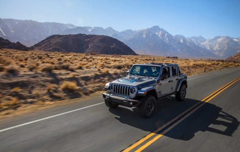La nueva Jeep vendrán en las versiones 4xe, Sahara 4xe y Rubicon 4xe. Los dos primeros con 4×4 permanente, ejes Dana 44 y caja de transferencia Selec-Trac de dos velocidades.