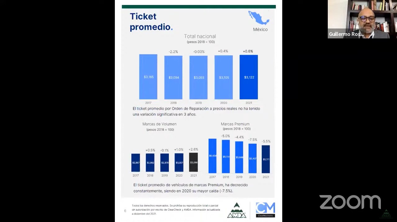 Guillermo Rosales, presidente de AMDA, señaló que el ticket por orden de reparación a precios reales no ha tenido una variación considerable en los últimos tres años.
