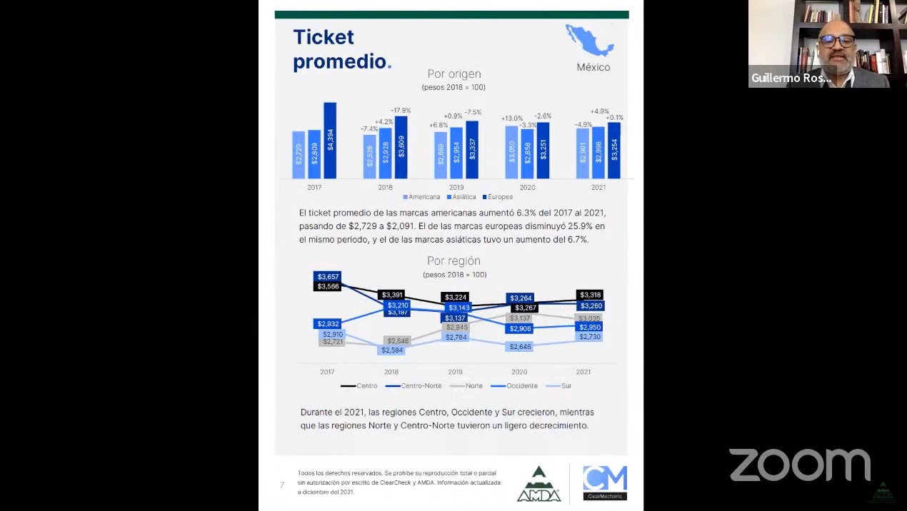 Los indicadores dicen que el ticket promedio pasó de 3 mil 105 pesos en 2020 a 3 mil 122 pesos en 2021, reflejando un avance del 0.6%.