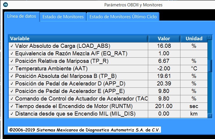 Por ejemplo, podemos observar directamente la temperatura del sensor ECT o la presión medida en el múltiple de admisión, en lugar de sólo tener un valor de voltaje. De igual manera, la línea de datos nos indica el grado de apertura de la mariposa o cuánto se ha presionado el acelerador, esto para ver más que una simple señal PWM.