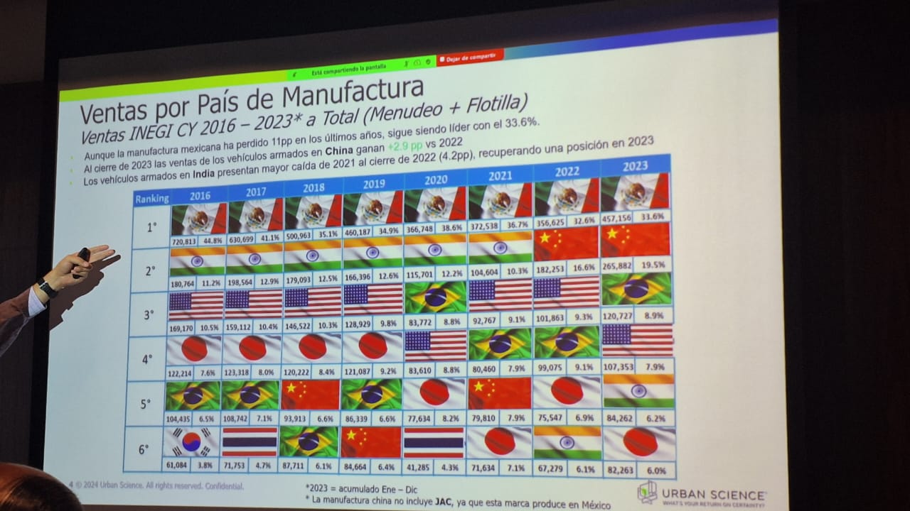 De acuerdo con un análisis de Urban Science, en el año 2023 los vehículos producidos en China alcanzaron una proporción del 19.5% del mercado mexicano, mientras que los vehículos locales cuentan con el 33.6% de las ventas totales, lo que significa una pérdida de 11% en los últimos años.